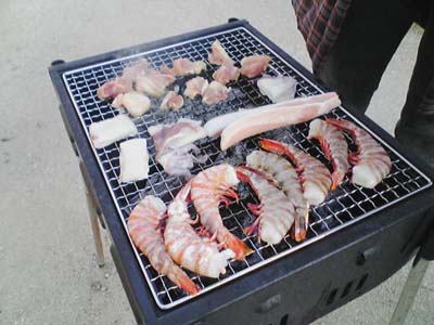 現地では焼いたり食べたり忙しく写真などすっかり忘れていた。