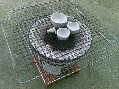 さらに残りを本焼きをしようと思っていたら・・・恐ろしい勢いで爆ぜまくった。人形の跡形も無い。他の作品も爆発。一気に暖めたのが敗因。残念。