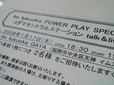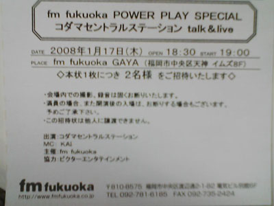 fm fukuoka POWER PLAY SPECIAL~コダマセントラルステーション talk&live~へ行ってきた。