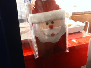 バス停で待っていたときにウィンドウに顔を出していたサンタさん。