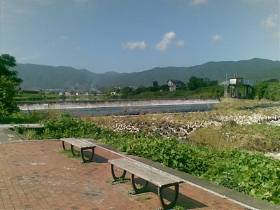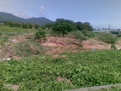 ジョギング途中にある川沿いの公園では先月の水害の爪あとのような状況が残っています。