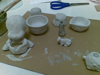 さらに残りを本焼きをしようと思っていたら・・・恐ろしい勢いで爆ぜまくった。人形の跡形も無い。他の作品も爆発。一気に暖めたのが敗因。残念。