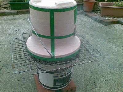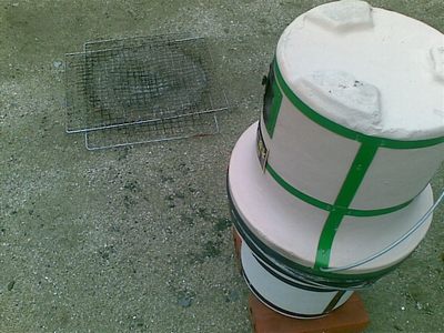 だんだん熱くなってきたのでフタのように七輪を重ねます。