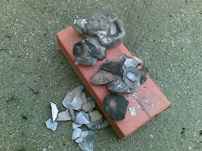 完成したものを取り出します。釉薬溶けてる。キンキン鳴ってる。