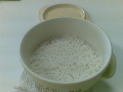 前回、電子レンジで米を炊く予定で紹介した器を使いお米炊いてみた。