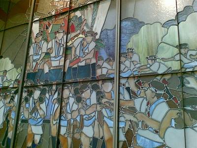 座った席は山笠のステンドグラスの下の席。