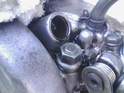 交換後試走してみると・・・。オイルが滲んでる(´・ω・`)