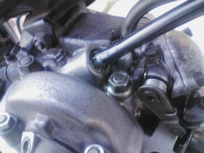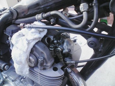 シートとタンクを外してエンジン側に付いているクリップを外して引っ張ってやると外れます。そこについているオーリングを交換。