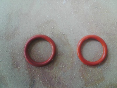 オーリングの新旧比較。古いほうは円が大きいね。